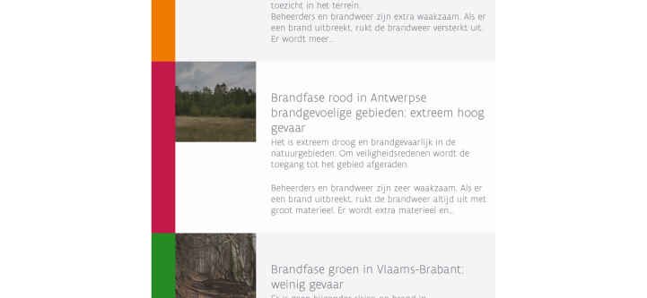 Het Agentschap Natuur en Bos heeft de waarschuwingsfase voor natuurgebieden in de provincie Antwerpen verhoogd naar rood. Dat is de hoogste alarmfase.